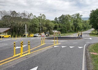 NCDOT crews recently installed a mini-roundabout in Swain County.
